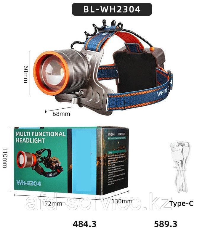 Мощный фонарь в линейке . WH-2304 - это батарея с огромной ёмкостью в 10000 мAh! Основная лампа: 30 W, вспомогательная: 5 W (COB). Фонарь ( угол наклона регулируется от 0 до 90 градусов). Увесистый аккумулятор на 5 V. Четыре режима свечения: сильный и сверхсильный, мигающий (сигнал бедствия SOS) и как светильник. Фонарь светодиодный налобный сверхмощный аккумуляторный, функция powerbank - заряжайте телефон, самый яркий светодиод в мире. Фонарик идеально подходит для активного отдыха, занятий спортом, охоты, рыбалки, работы в трудно освещаемых местах. Налобный светодиодный фонарь удобно сидит на голове, водонепроницаемый и ударопрочный, имеет мягкую резинку и регулировку угла свечения. Выбрав наш спортивный, кемпинговый, тактический, туристический фонарь, Вы получите изделие отличного качества. Фонарь налобный на голову - Отличный подарок мужчине. Фонарик налобный имеет прорезиненный корпус и влагозащищенную кнопку включения. Используется в качестве переносной батареи (power bank). Налобный фонарь аккумуляторный незаменим во время строительных, ремонтных или монтажных работ в условиях плохого освещения. Туристические аксессуары незаменимы для туристов, любителей охоты и рыбалки. Есть разъем USB для зарядки гаджетов. Фонарь светодиодный аккумуляторный оснащен зарядным устройством, которое контролируется специальным чипом управления зарядкой и имеет высокую надежность, быструю зарядку, защиту от перезаряда и пере разряда, а также функцию защиты от короткого замыкания. Фонарик аккумуляторный имеет индикацию состояния зарядки и и четырехуровневую индикацию мощности (25%, 50%, 75% и 100%). Для полной зарядки требуется 4 часов. Чтобы продлить срок службы батареи, перед первым использованием рекомендуется зарядить в течение 3 часов. Когда фонарь аккумуляторный не используется длительное время его следует полностью заряжать один раз в три месяца. Время зарядки не должно превышать 24 часа! Во время использования налобный фонарь аккумуляторный не направлять прямо в глаза. Телескопический зум. Время непрерывной работы от 10-15 часов. Вес брутто 589,3г, вес нетто 484,3г.